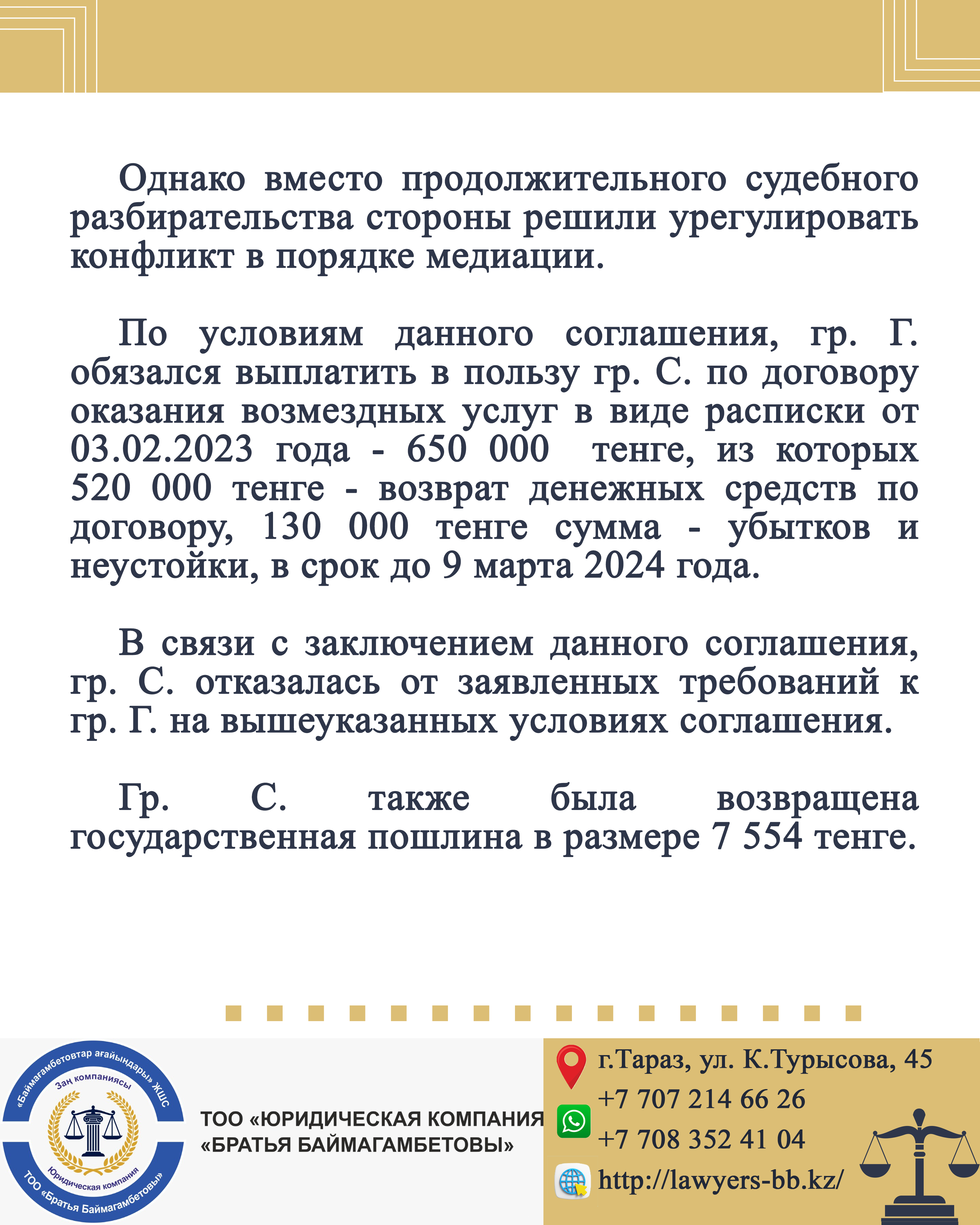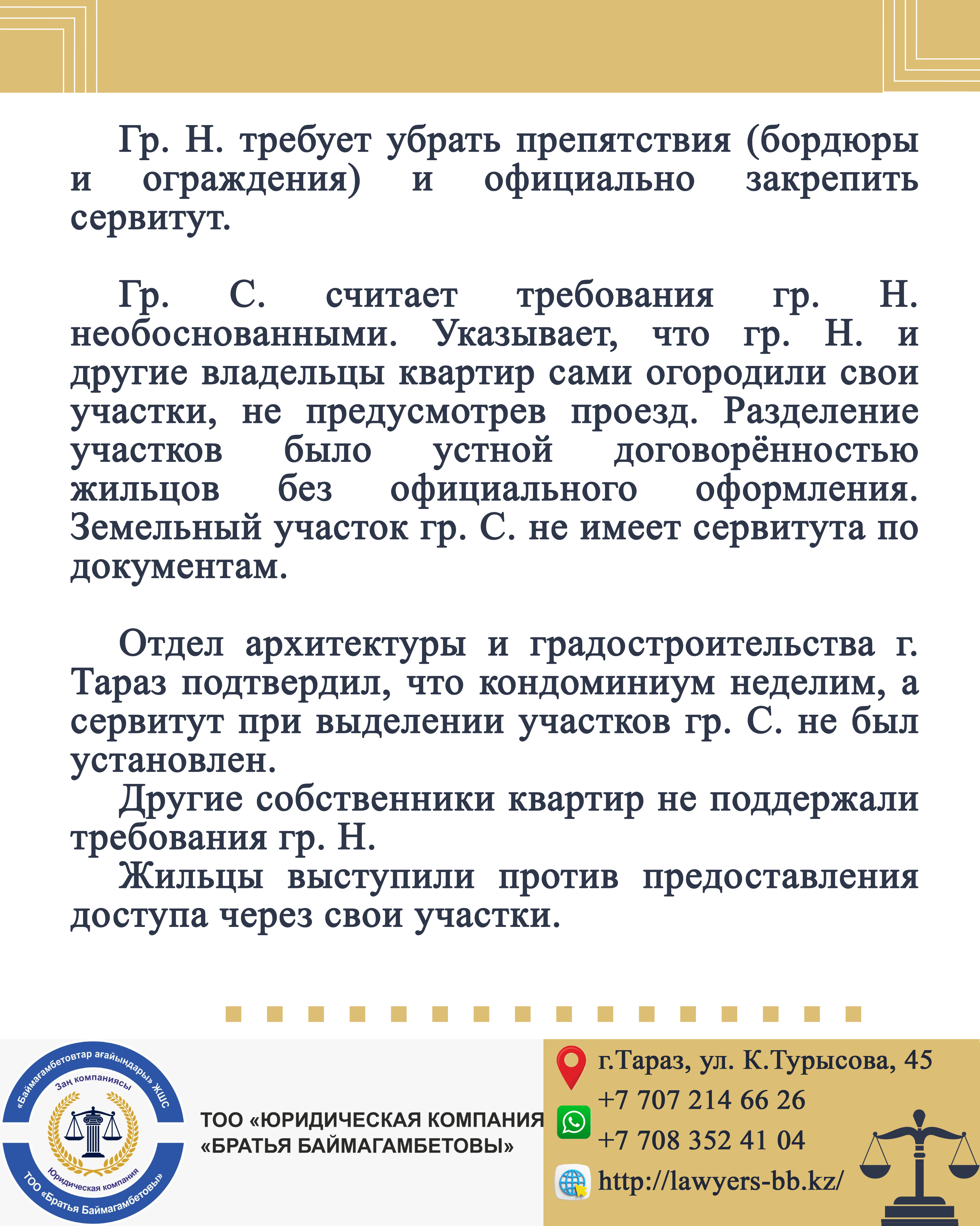 Оказываем профессиональные юридические услуги по вопросам гражданского, административного, трудового, финансового, семейного, земельного, жилищного и корпоративного права физическим и юридическим лицам Республики Казахстан.